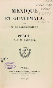 1843. (VIAJES). LARENAUDIERE, M. DE: MEXIQUE ET GUATEMALA. Paris: Firmin Didot Frères, 1843. 8º mayor. 525 p. 2 mapas plegados. Enc. media piel. Nervios. Doble tejuelo.