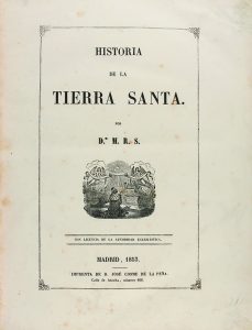 1853. (VIAJES-TIERRA SANTA). HISTORIA DE TIERRA SANTA. Madrid: Imp. de Jose Cosmea de la Peña, 1853. 4º mayor. XII + 702 p., 3 h. Ilustr. con 4 planos plegados y 7 láms. litográficas. Papel barbado. Enc. levemente rozada en media piel.