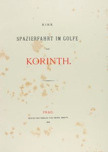 60 láminas fuera de texto, grabadas sobre papel de china y encoladas. Más un gran mapa plegado, del Golfo de Korinto (Meerbusen von Korint) de 42x74 cm. Con 4 pequeños mapas insertados: Port von Salona y Galaxidi; Islas Trizonia; Vostizza Bay; Islas Kala. 1 plano del Istmo de Korinto de 46,5x156 cm. conservado dentro de carpetilla en la misma encuadernación. Encuadernación en tela editorial con estampación en perfecto estado de conservación sin rozaduras ni manchas, solo puntos de oxido. Precioso libro de viajes por el golfo de Korinto, con dibujos y descripciones del propio Archiduque Luis Salvador. La edición como todas las de este erudito de la realeza era de corto tiraje no venal destinado a los amigos o intercambios.