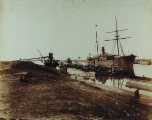 1880 ca. (VIAJES-EGIPTO). ARNOUX, HYPPOLITE: 5 ALBUMINAS DE PORT-SAÏD, 3 de ellas de buques en el puerto. 23x29 cm casa unidad.