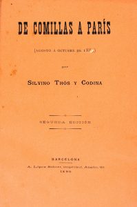 1890. (VIAJES). THOS Y CODINA, SILVINO: DE COMILLAS A PARIS (AGOSTO A OCTUBRE DE 1889). Segunda edición. Barcelona: A. López Robert, Impresor, 1890. 8º. XIX + 198 p., 1 h. Rústica. Intonso. Palau 331900: ´Se ocupa de Comillas, Santander,...