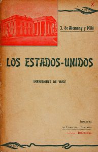 1903. (VIAJES). ALEMANY I MILA: LOS ESTADOS UNIDOS. IMPRESIONES DE VIAJES. [Dedicatoria autógrafa del autor] Barcelona: Imprenta de Francisco Baxarias, 1903. 8º. 119 p., 3 h. Ilustrado con 2 fotograbados. Cubiertas originales con fotografia y a...