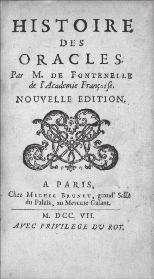 Fontenelle. Histoire des Ora-cles. Nouvelle Edition. Paris, Brunet, 1707. In-12, reliure de l’époque veau brun, dos à nerfs orné. Restauration ancienne à la coiffe inférieure. Titre, 11 ff., 321 pp. et 1 f. Signatures caviardées sur les gardes