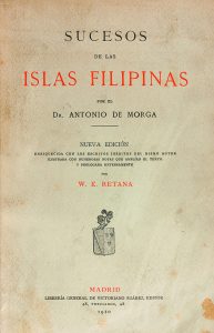 1909. (FILIPINAS). MORGA, ANTONIO DE: SUCESOS DE LAS ISLAS FILIPINAS. Prólogo de W.E. Retana. Madrid: Libr. Gnral. Victoriano Suarez, 1909. 4º menor. 180 p. + 591 p., 1 h. Enc. en media piel, tejuelos, conserva las cubiertas de rústica original.