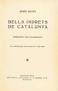 1923. (VIAJES-CATALUNYA). BOTEY, JOSEP: BELLS INDRETS DE CATALUNYA. Barcelona: Ed. Catalana, 1923. 8º. 180 p. Ilustrado con láminas fotográficas. Enc. en tela editorial. Buen estado de conservación. Ex-libris de antiguo poseedor.