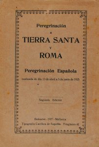 1927. (VIAJES). PARERA, JUAN: PEREGRINACION A TIERRA SANTA Y ROMA. Dietario escrito y publicado por [...] Peregrinación Española realizada de dia 13 de abril a 5 de junio de 1925. Mallorca- Baleares: Tip. Católica de Sapobla, 1927. 8º mayor. 168...