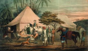 1851. (VIAJES). CONJUNTO DE DOS LITOGRAFIAS COLOREADAS DE UNA EXPEDICION EN LA SELVA. London: Whatson. 46x65 cm.