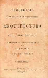 1854. (ARTE). CARRILLO, MARIANO: PRONTUARIO ELEMENTAL DE CONSTRUCCIONES DE ARQUITECTURA POR EL GENERAL DIRECTOR SUBINSPECTOR DE INGENIEROS DEL EGERCITO EN LA ISLA DE CUBA. Nueva York: Imp. de Holman, Gray y Comp., 1854. 4º menor. 3 h. + 180 p. Enc....
