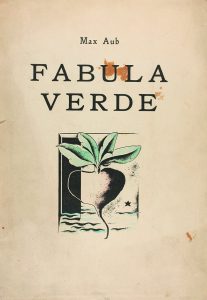 1932. (AUTOGRAFO-VANGUARDIAS). AUB, MAX: FABULA VERDE: [1932] Aub, Max. Fábula Verde. Valencia: Tipografía Moderna, 1932. Folio menor. 18 h., inclusive la blanca de respeto al iniciarse. Cubiertas originales impresas y con toque de aguada...