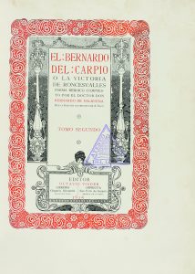 1914. (BIBLIOFILIA). VALBUENA, BERNARDO DE: EL BERNARDO DEL CARPIO O LA VICTORIA DE RONCESVALLES. POEMA HEROICO. Barcelona: Octavio Viader, edit., 1914. 2 vols. en folio. I: 277 p., 2 h.; II: 253 p., XXIII p., 1 h. Texto orlado, a dos tintas....