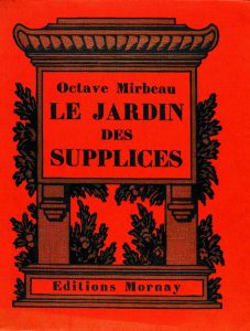 1923. (BIBLIOFILIA). MIRABEAU, OCTAVE: LE JARDIN DES SUPPLICES. Paris: Chez G. & A. Morany Libraires, 1923. 8º mayor. 322 p., 4 h. Illustr. par de Pidoll. Rústica con las cubiertas origininales ilustradas. Ejemplar de los 61 en papel Japon...
