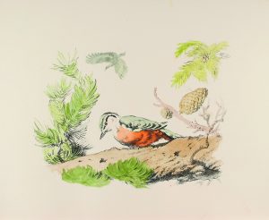 1945. (BIBLIOFILIA). VERDAGUER, MOSSEN JACINT: QUE DIUEN ELS OCELLS. Revisió d`Alfred Gallart. Sabadell? Imp. Joan Sallent/Ed. Casiopea, 1945. Folio. 162 p., 6 h. Ilustr. con litografias de Alexandre Coll, coloreadas a mano. Enc. en cartoné...