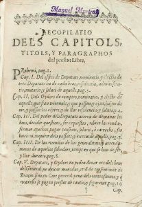 1634. (CATALUNYA). LLIBRE DELS QUATRE SENYALS DEL GENERAL DECATALUNYA. [Barcelona: de manament de Ses Senyorias, En casa de Hieronym Margarit, 1634]. 8º mayor. 30 p. + 340 p., 22 h. Enc. en pergamino de época. Sello estampillado de antiguo ...