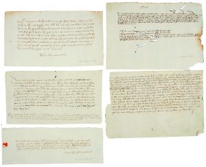 s.XIV-XV. (BARCELONA). 5 MANUSCRITOS DE FINALES DE S. XIV PRINCIPIOS DEL XV. Manuscritos sobre papel, 11x20 cm c/u aprox. Todos relativos a Barcelona y datados entre 1358 y 1476.