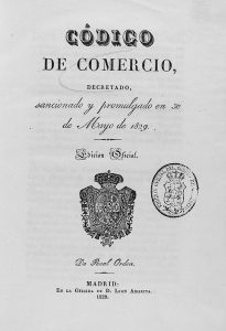 1829. (COMERCIO-1ª EDICION). CODIGO DE COMERCIO DECRETADO, SANCIONADO Y PROMULGADO EN 30 DE MAYO DE 1829. Madrid: En La Oficina de D. Leon Amarita, 1829. 8º mayor. 330 p. Enc. en pasta española. Sello estampillado con escudo y texto ´Edición...