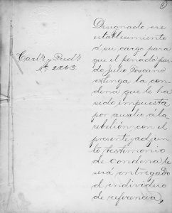 1898. (CUBA). ORDEN DEL ALCALDE DE MATANZAS PARA QUE EL PENADO PARDO JULIO TESEANO SEA TRASLADADO POR CORDILLERA ORDINARIA AL PRESIDIO DE LA HABANA, PARA QUE CUMPLA LA CONDENA QUE LE HA SIDO IMPUESTA, POR AUXILIO A LA REBELION. Matanzas, 1 de Julio...