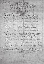 Marchands et Maitres ouvriers en Draps d’Or, d’Argent et Soye de cette ville de Lyon », délivré à Étienne Monin, fils de Jean Monin «aussi maître de notre art » : Signé Burel (?), Vanderabel, Ravier, Chomat… • Lettre de Maîtrise des Ouvriers en Soye. Lyon, 7 septembre 1763. Certificat (36 x 17 cm) imprimé et complété, sur papier vergé, délivré à Henry Antoine Garagnon, fils de Jean-François Garagnon « aussi maître ». Signé Lagneau, Gaudin, Hennequin, Brunet.