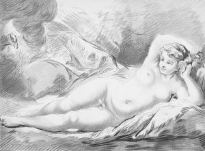 1780 ca. BONNET, LOUIS NARIN (1743-1793): JUPITER ET DANAE. Aguafuerte coloreado al pastel [gravure au pastel]. 35,5 cm x 44 cm. plancha; 38x48 cm. papel.