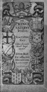 1531. (ITALIA). SEGETHUS, THOMAS: DE PRINCIPATIBUS ITALIAE. TRACTATUS VARY. Lugd, Bat.: ex. officina Elzeveriana, 1531. 12º. 372 p., 5 h. Papel tostado. Margen superior algo corto. Enc. en pergamino, pequeñas faltas en las esquinas. Cortes dorados.