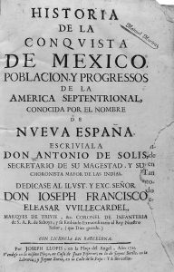 1711. (HISTORIA DE MEXICO). SOLIS, ANTONIO DE: HISTORIA DE LA CONQUISTA DE MEXICO, POBLACION Y PROGRESSOS DE LA AMERICA SEPTENTRIONAL, CONOCIDA POR EL NOMBRE DE NUEVA ESPAÑA. Barcelona: Por Joseph Llopis. 1711. Folio. 8 h. (incl. portada) + 473 p.,...