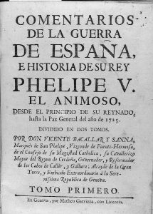 1926 ca. (HISTORIA). BACALLAR Y SANNA: COMENTARIOS DE LA GUERRA DE ESPAÑA, E HISTORIA DE SU REY PHELIPE V. Génova: Ed. Matheo Garviza, sa. 2 vol. en 4º. I: 450 p.; II: 446 p. Encuadernación en plena piel, tejuelo, lomo cujado, ruedas en los...