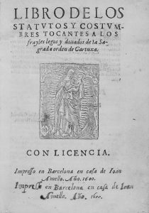 1600. (CARTUJOS-COSTUMBRES DISOLUTAS). LIBRO DE LOS STATUTOS [SIC] Y COSTUMBRES TOCANTES A LOS FRAYLES LEGOS Y DONADOS DE LA SAGRADA ORDEN DE CARTUXA. Impresso en Barcelona: en casa de Ioan Amello, 1600. 4to. [60] páginas sin numerar. En la portada...