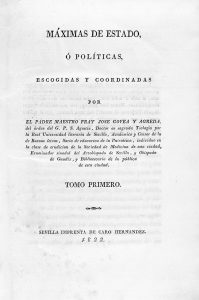 1822. (HUMANIDADES). GOVEA Y AGREDA, JOSE: MÁXIMAS DE ESTADO O POLITICAS, ESCOGIDAS Y COORDINADAS POR... TOMO PRIMERO. Sevilla: Imp. Caro Hernandez, 1822. 2 tomos en 1 vol. en 4º menor. I: VIII + 1 h. + 242 p.; II: 3 h. + 255 p., 2 h. Enc. en...