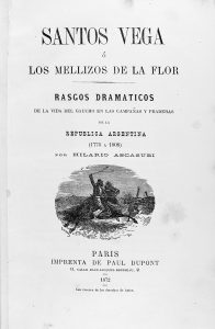 1872. (LITERATURA-SUDAMERICA). ASCASUBI, HILARIO: SANTOS VEGA O LOS MELLIZO DE LA FLOR. RASGOS DRAMATICOS DE LA VIDA DEL GAUCHO EN LAS CAMPAÑAS Y PRADERAS DE LA REPUBLICA ARGENTINA (1778 A 1808). Paris: Imp. de Paul Dupont, 1872. 4º menor. L + 485...