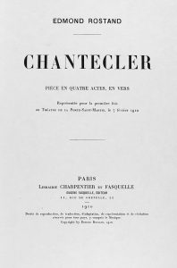 1910. (LITERATURA). ROSTAND, EDMOND: CHANTECLER. PIECE EN QUATRE ACTES, EN VERS. Paris: Libr. Charpentier et Fasquelle, 1910. 4º. 244 p., 1 h. Enc. en plena piel, nervios, cortes dorados. Edición numerada de 1000 ejemplares.
