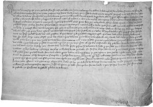1407. (ARBUCIAS). VENTA DE TIERRA DE PEDRO VALLS. Manuscrito sobre pergamino dado y firmado en Arbucies, 19 de junio de 1407. 21x30 cm.