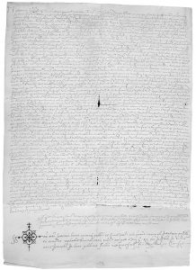 1556. (MALLORCA). ANDREU PORTELL, MERCADER DE MALLORCA, VENDE A PAU MOIX, DONZELL DE MALLORCA, UN CENSO ANUAL QUE PAGA MIQUEL MIRALLES, CIUDADANO DE MALLORCA. Manuscrito sobre pergamino, 40x29 cm.