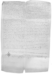 1577. (MALLORAC). MANUSCRITO SOBRE PERGAMINO. ELISABET MOIX, HIJA DEL DONZEL JUAN MOIX DE MALLORCA, RECIBE 250 LLIURES DE PARTE DE FERRAN MOIX. Manuscrito sobre pergamino, 51x35 cm.