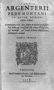 1578. (MEDICINA). ARGENTERIUS, IOANNIS: IOANNIS ARGENTERII PEDEMONTANI IN ARTEM MEDICINALEM GALENI. Comentarii tres, non solum medicinae professoribus utiles & necessarii: sed etiam philosophis, & inuversis, qui rerum scientia delectantur, summpere...