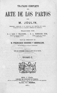 1874. JOULIN: TRATADO COMPLETO DEL ARTE DE LOS PARTOS. Madrid: Moya y Plaza, 1874. 3 vol. en 8º mayor. I: X + 590 . + 1 h.; II: 677 p.; III: 209 p. + 3 h. Ilustraciones en el texto. Enc. en media piel.