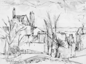 1980 ca. MORATO ARAGONES: MONTMATRE. Tinta y aguada sobre papel.