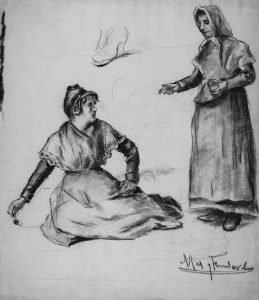 MAS I FONTDEVILA [ATRIBUIDO A:]. ESTUDIO DE DOS MUJERES. Carbó i llapis en papel verjurado con filigrana. 34,5x31 cm. Firmado.