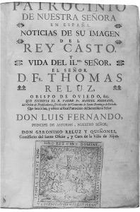 1718. (OVIEDO). PATROCINIO DE NUESTRA SEÑORA EN ESPAÑA. NOTICIAS DE SU IMAGEN DEL REY CASTO. Y VIDA DEL IL. SR. FR. THOMAS RELUZ, OBISPO DE OVIEDO. Oviedo: Francisco Plaza, 1719. 2 partes en un volúmen. Portada a dos tintas, escudo de Luis...