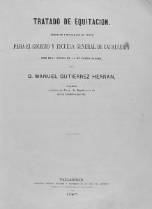 1863. (EQUITACION). GUTIERREZ HERRAN, MANUEL: TRATADO DE EQUITACIÓN : APROBADO Y DECLARADO DE TEXTO PARA EL COLEGIO Y ESCUELA GENERAL DE CABALLERÍA, POR REAL ORDEN DE 14 DE ENERO ÚLTIMO. Valladolid : [s.n.], 1863 (Imp. Librería Nacional y...