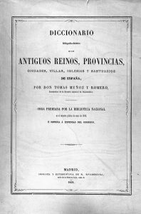 1858. (DICCIONARIO). MUÑOZ Y ROMERO, TOMAS: DICCIONARIO BIBLIOGRAFICO-HISTORICO DE LOS ANTIGUOS REINOS, PROVINCIAS, CIUDADES, VILLAS, IGLESIAS Y SANTUARIOS DE ESPAÑA. Madrid: Imp. y Est. de M. Rivadenyra, 1858. 4º mayor. 329 p. Texto a dos...