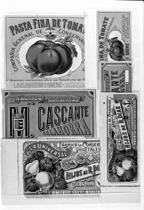 s. XIX. COLECCION DE APROX. 125 ETIQUETAS DE PRODUCTOS ALIMENTICIOS Y EN CONSERVAS, ALGUNA DE TABACOS Y FABRICAS DE TEJIDOS. Muy bonita colección de etiquetas de cambio de siglo.