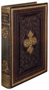 110. Dassance (abbé). L’Imitation de Jésus-Christ. Paris : L. Curmer, 1836. — In-8, front., Viii pp., (1 f.), 454 pp., 10 pl. Veau aubergine, plats ornés d’une belle plaque restauration à froid avec motifs de rinceaux dorés