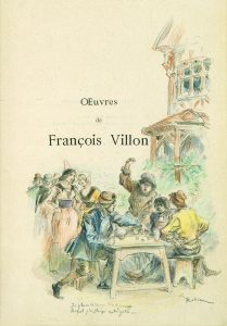 Villon (François). Œuvres. Texte révisé et préface par Jules de Marthold. Paris, Librairie L. Conquet, 1897. In-8, maroquin rouge, roulette et deux filets dorés autour des plats, encadrement doré constitué de deux doubles filets se croisant au