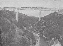 [Tardes]. Train sur le Viaduc de la Tardes. Photo Pinthon, Evaux-les-Bains, vers 1900. Photographie (16,5 x 23 cm) contrecollée sur carton légendé avec cachet du photographe. Le Viaduc ferroviaire de la Tardes reliant Bourges à Aurillac, réalisé