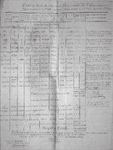 état des Services. Réunion de deux documents : • Services de Claude Vincent Polony. Rochefort, 24. 7bre 1793, an 2. Grand document (57 x 53,5 cm) sur papier bleuté, détaillant les années de campagnes, les noms des bâtiments et de leurs