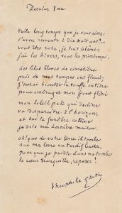 Les 4 strophes de son fameux poème amoureux intitulé « Dernier vœu », tiré de son recueil de poésies Emaux et Camées et publié dans sa dernière édition en 1872 : Voilà longtemps que je vous aime : L’aveu remonte à dix huit ans ! Vous êtes rose, je suis blême ; J’ai les hivers, vous les printemps (…).