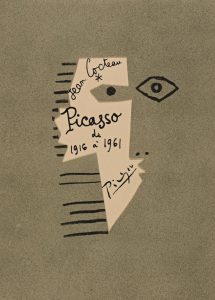 Cocteau (J.). Picasso de 1916 à 1961. Mo-naco, Editions du Rocher, 1962 ; in-4 en ff., couv. Il-lustrée et découpée laissant apparaître le titre, chemise, étui.