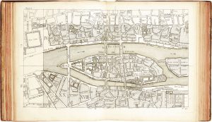 DEHARME (L. Fr.). Plan de la ville et faubourgs de Paris, divisé en 20 quartiers... Paris, Chez l’auteur, 1763, in-4°, basane marbrée, filets à froid autour des plats, dos à nerfs orné, tranches rouges (reliure de l’époque).