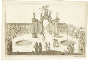 Première et unique édition. 8 planches repliées de facture naïve, gravées par F. L. Mangin. Elles représentent les cérémonies, décorations, arcs de triomphe, emblèmes, vues de la ville commémorant l’entrée du roi Louis XV à Metz. Bel exemplaire en veau décoré de l’époque. Une planche habilement restaurée. Dimensions : 321 x 202 mm. Cohen, 522 ; Vinet, 521 ; Ruggieri, 573.