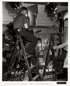 Marlène Dietrich sur le tournage du film d'Ernst Lubitsch (1937). Épreuve argentique d'époque (25,5x20,5 cm, marges comprises).