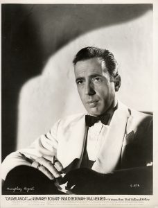 Humphrey Bogart dans le film de Michael Curtiz (1942). Épreuve argentique d'époque (25,5x20 cm, marges comprises). Tampon de la production au dos.